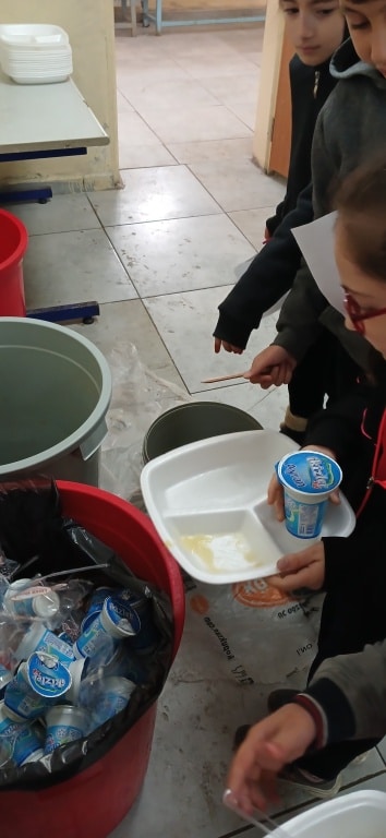 Taşkesti İlkokulu’nun çevre gönüllüsü öğrencilerinden oluşan “Yeşil Bir Adım” ekibi, doğa dostu bir alışkanlığı okul yaşamına kazandırmaya devam ediyor. Her gün yemek saatinde geri dönüşüm ve israfı önleme amacıyla nöbet tutan ekip, sürdürülebilir bir dünya için örnek bir çalışma yürütüyor.