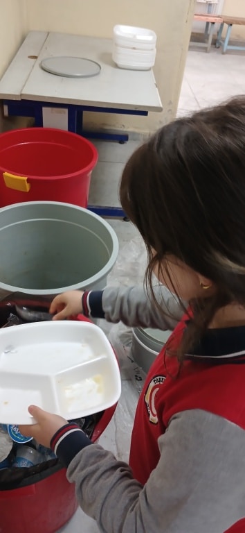 Her gün düzenli olarak sürdürülen bu uygulama, öğrencilerin çevre bilinci kazanmasında önemli bir rol oynarken, okulda da sürdürülebilir yaşam kültürünün yerleşmesine katkı sağlıyor.